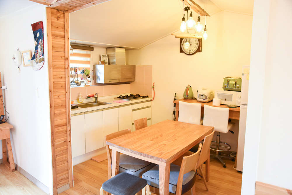 | 시설 | TV,냉장고,와이파이,개별냉난방,식탁,가스렌지, 전자렌지,커피포트,토스터기,압력밥솥,식기세트, 세탁기,비데 |